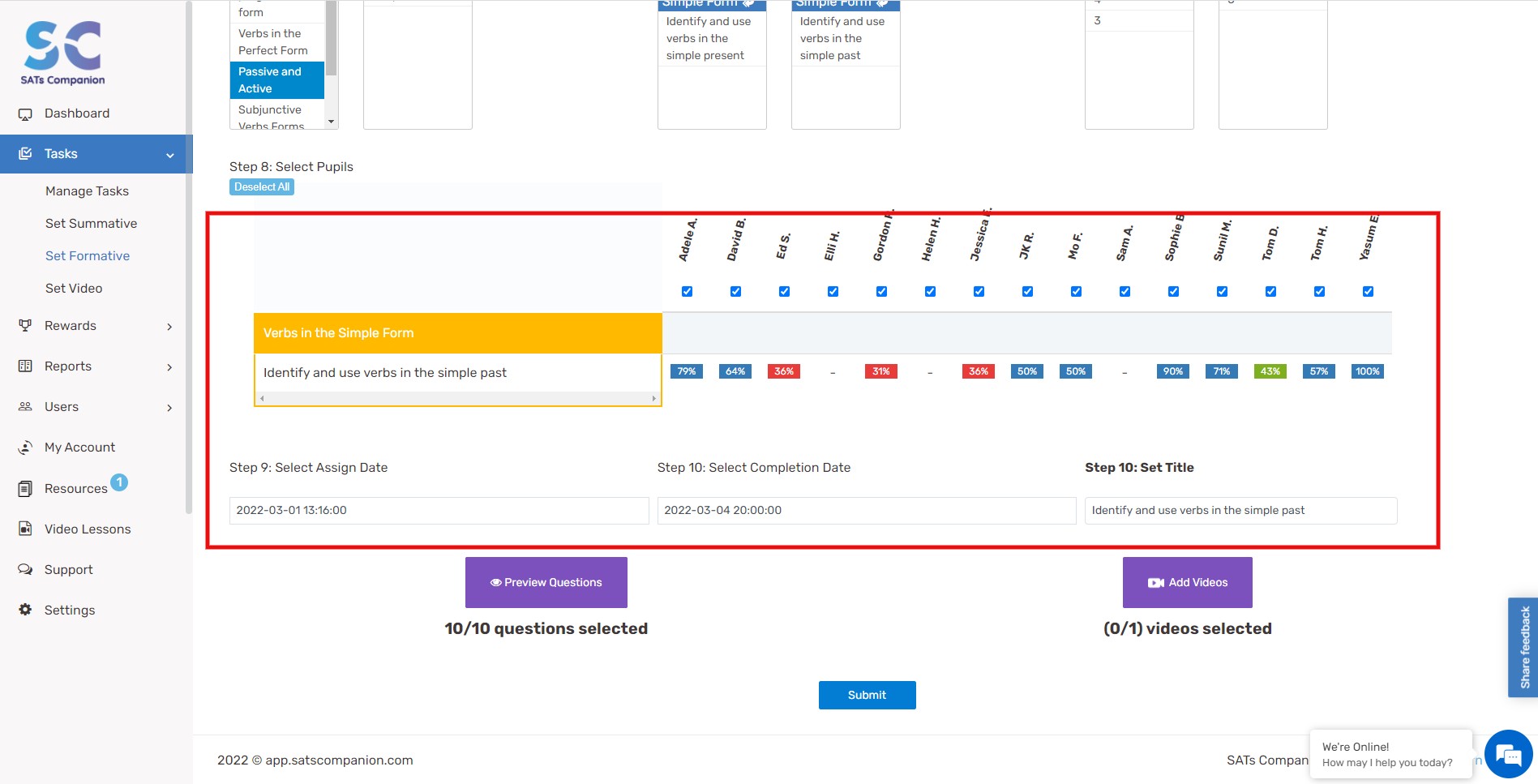 Step 3: This will take you to a menu where you can change which students are assigned to a task and change the date when the task is assigned and due. You can also change task