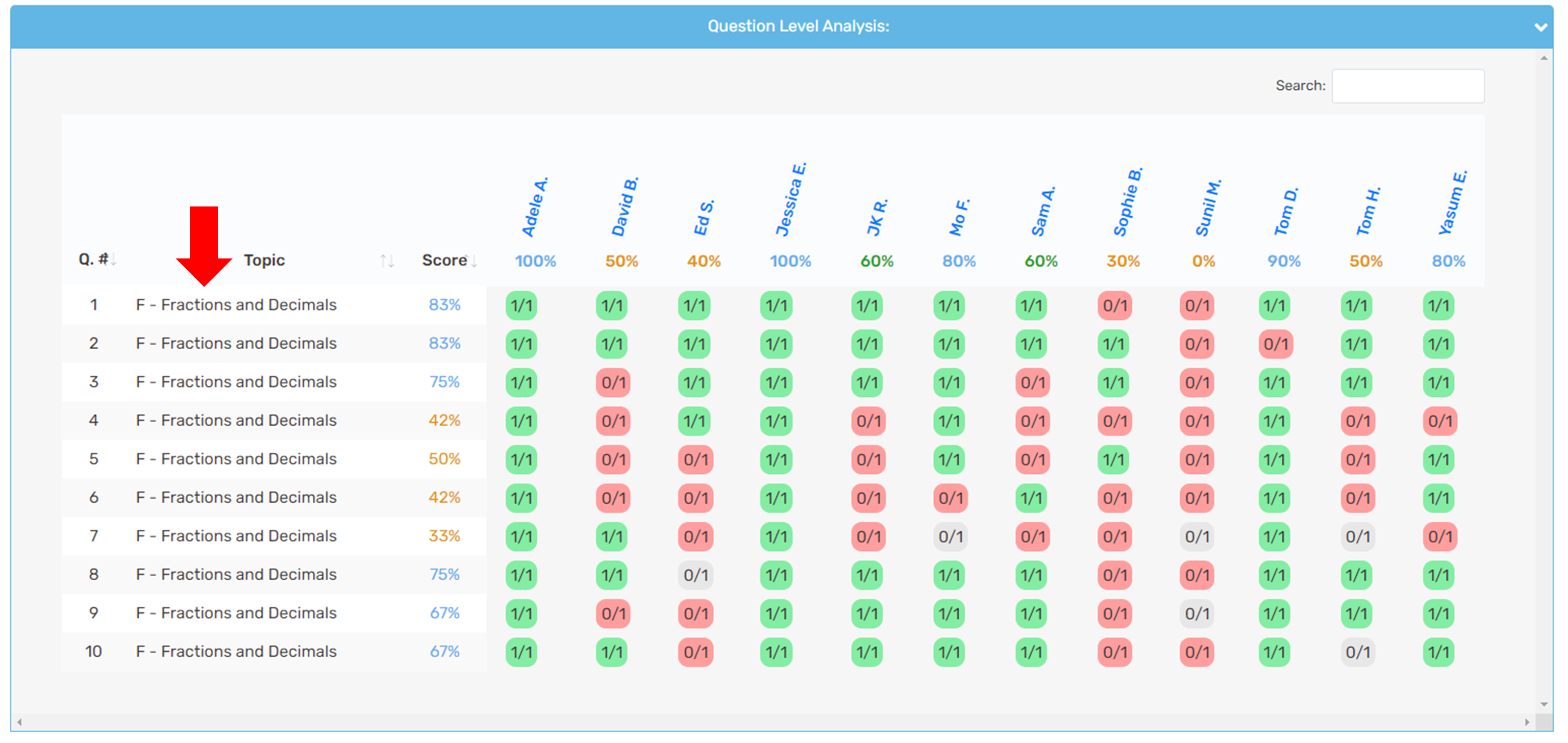 Step 4: If you want to see the exact answer your pupils gave, click on the question in the 'Question Level Analysis'.